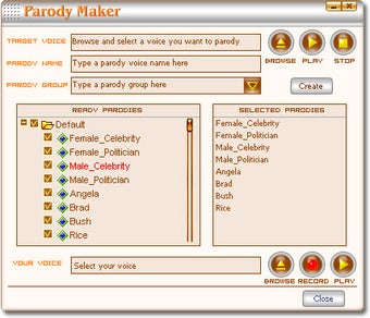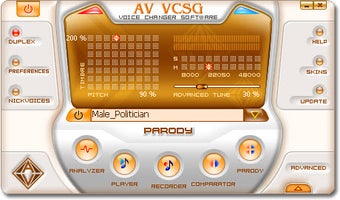 AV Voice Changer Software comprend plusieurs voix de personnalités pré-définies, comme par exemple George W. Bush, Brad Pitt ou Samuel L. Jackson. Vous pouvez aussi ajuster les préférences du son de votre voix jusqu'à la faire ressembler à celle de quelqu'un de célèbre.